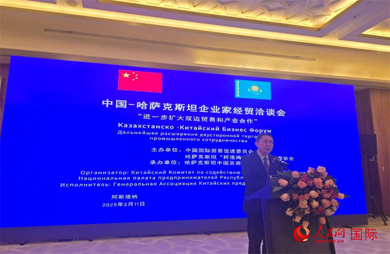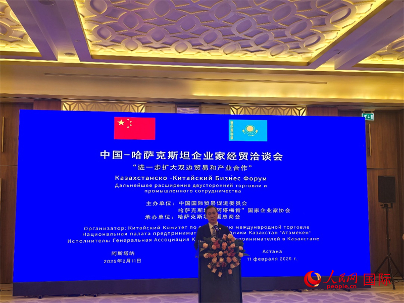 人平易近网阿斯塔纳2月11日电 (记者)2月11日,中国—哈萨克斯坦企业家经贸洽商会正在阿斯塔纳成功举办。中国贸促会会长任鸿斌率中国企业家代表团出席会议并致辞,哈萨克斯坦“阿塔梅肯”国度企业家协会巴塔洛夫,中国驻哈萨克斯坦大使韩春霖,中哈企业家委员会中方代表、中信集团副总司理王国权等出席揭幕式并致辞,中哈工商界人士200余人取会。